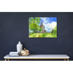 Technika wykonania: gwasz, wymiary: 70x50. Praca oprawiona jest w surową drewnianą ramę o szerokości 3 cm, którą można samodzielnie pomalować na wybrany kolor.