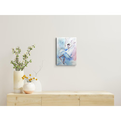 BALETNICA,"MUSNIĘTA BŁĘKITEM" AKWARELA WYMIARY 40×30CM. PRACA OPRAWIONA W PASSPARTOU. WYMIARY CALKOWITE; 50×40CM.