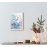 Praca oprawiona jest w passe-partout i białą nowoczesną ramę o szerokości 1,5 cm.
