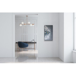 Akryl na tekturze oprawiony w nowoczesną głęboką ramę o szerokości 1,5cm oraz głębokości 6cm.Obraz zabezpiecza szybka z pleksi.