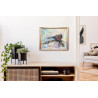 Akryl na płótnie 27×33cm oprawiony jest w nowoczesną ramę w morskim kolorze o szerokości 6cm.