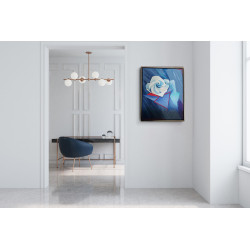 Akryl na tekturze oprawiony w nowoczesną głęboką ramę o szerokości 1,5cm oraz głębokości 6cm.Obraz zabezpiecza szybka z pleksi.