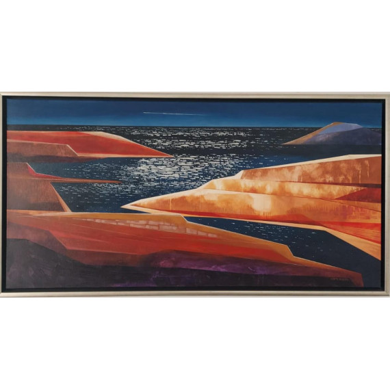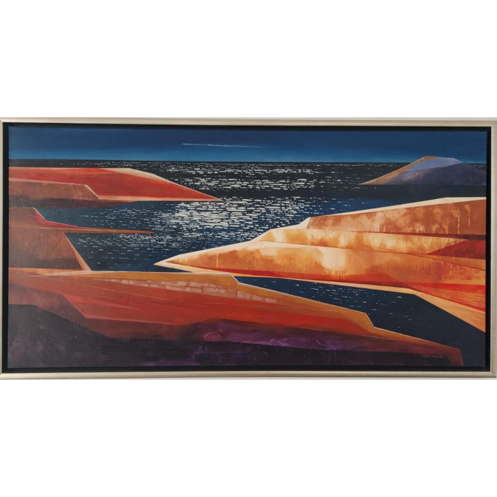 Akryl na płótnie oprawiony w nowoczesną ramę.