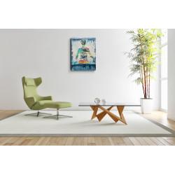 Fascynujący Obraz „Mantras 5” to wyjątkowe dzieło pełne symboliki i abstrakcji. Ukazuje postać w artystycznym stylu z dominacją chłodnych odcieni błękitu i kolorowych detali, które nadają głębi i charakteru. Idealnie sprawdzi się w nowoczesnych, minimalistycznych wnętrzach, dodając przestrzeni elegancji i wyrazistości
