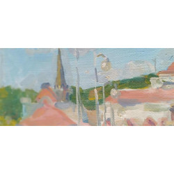 Akwarela oprawiona w passe partout o wymiarach całkowitych 40×50cm.