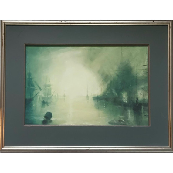 Praca oprawiona w ramę o szerokości 6cm,w kolorze mahoniu.