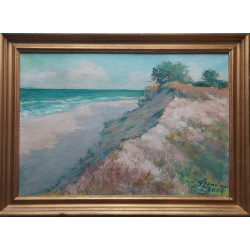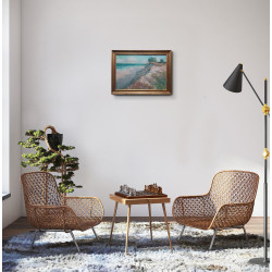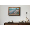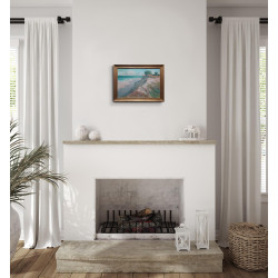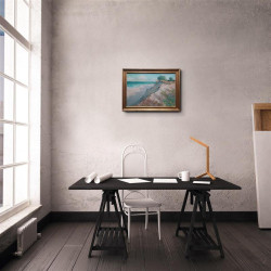 Praca jest oprawiona w ramę o kształcie półwałka w kolorze szampańskiego złota. Szerokość ramy 3cm,głębokość 4cm.