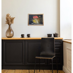 Technika wykonania: gwasz, wymiary: 70x50. Praca oprawiona jest w surową drewnianą ramę o szerokości 3 cm, którą można samodzielnie pomalować na wybrany kolor.