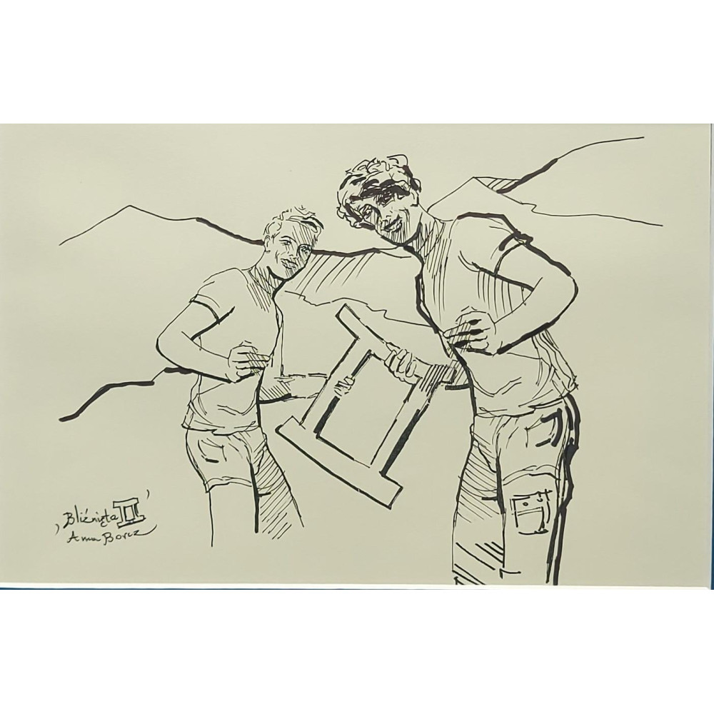 Rysunek tuszem o wymiarach całkowitych 20×30cm/30×40cm.