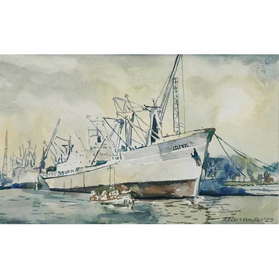 "Statek - Lelewel" to doskonały wybór dla miłośników sztuki morskiej oraz osób poszukujących unikalnego dodatku do swojej kolekcji. Przenieś się w świat żagli i morskich horyzontów, dodając tę akwarelę do swojego życia.