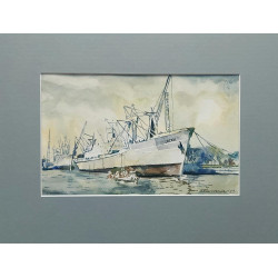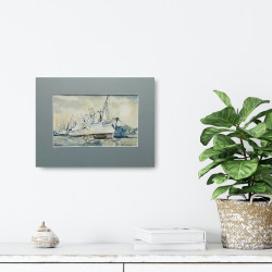 "Statek - Lelewel" (2023) - Akwarela, wymiary 17×28cm/30×40cm, oprawiona w Passe partout