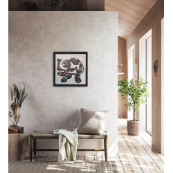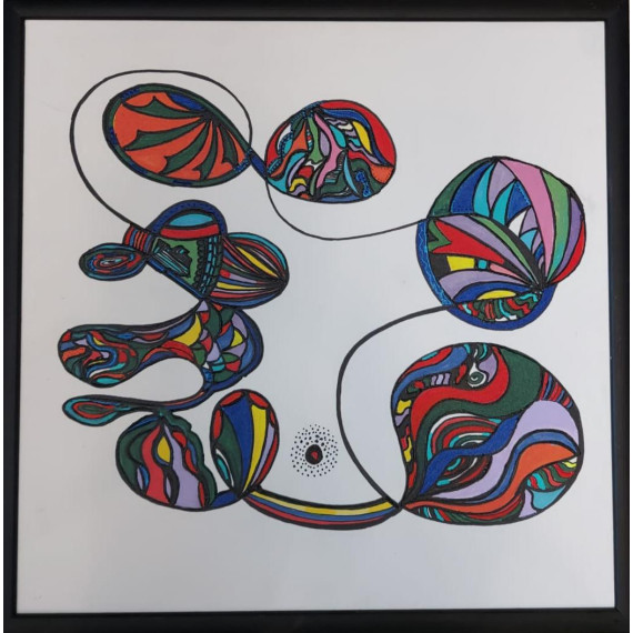 Praca oprawiona w ramę o szerokości 2cm.Całkowite wymiary 38cmx52cm.