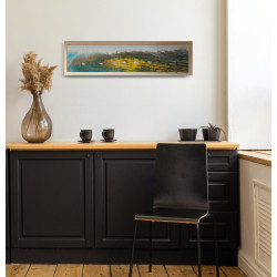 Praca oprawiona w prostą drewnianą ramę o szerokości 2cm.