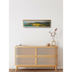 Technika wykonania: gwasz. Wymiary: 33x24 cm. Drewniana rama o szerokości 2 cm, w kolorze naturalnym.