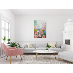 Harmonia i spokój – pastelowe barwy oraz delikatna kompozycja kwiatowa wprowadzą do wnętrza uczucie relaksu i równowagi, idealne do przestrzeni wypoczynkowych.