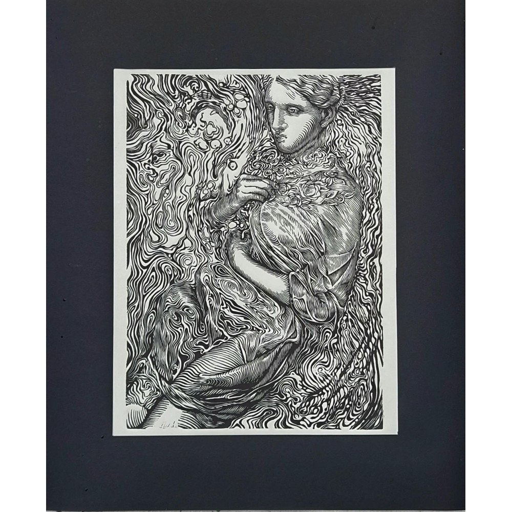 Praca oprawiona w passe partout oraz prostą drewnianą ramę o szerokości 2cm.