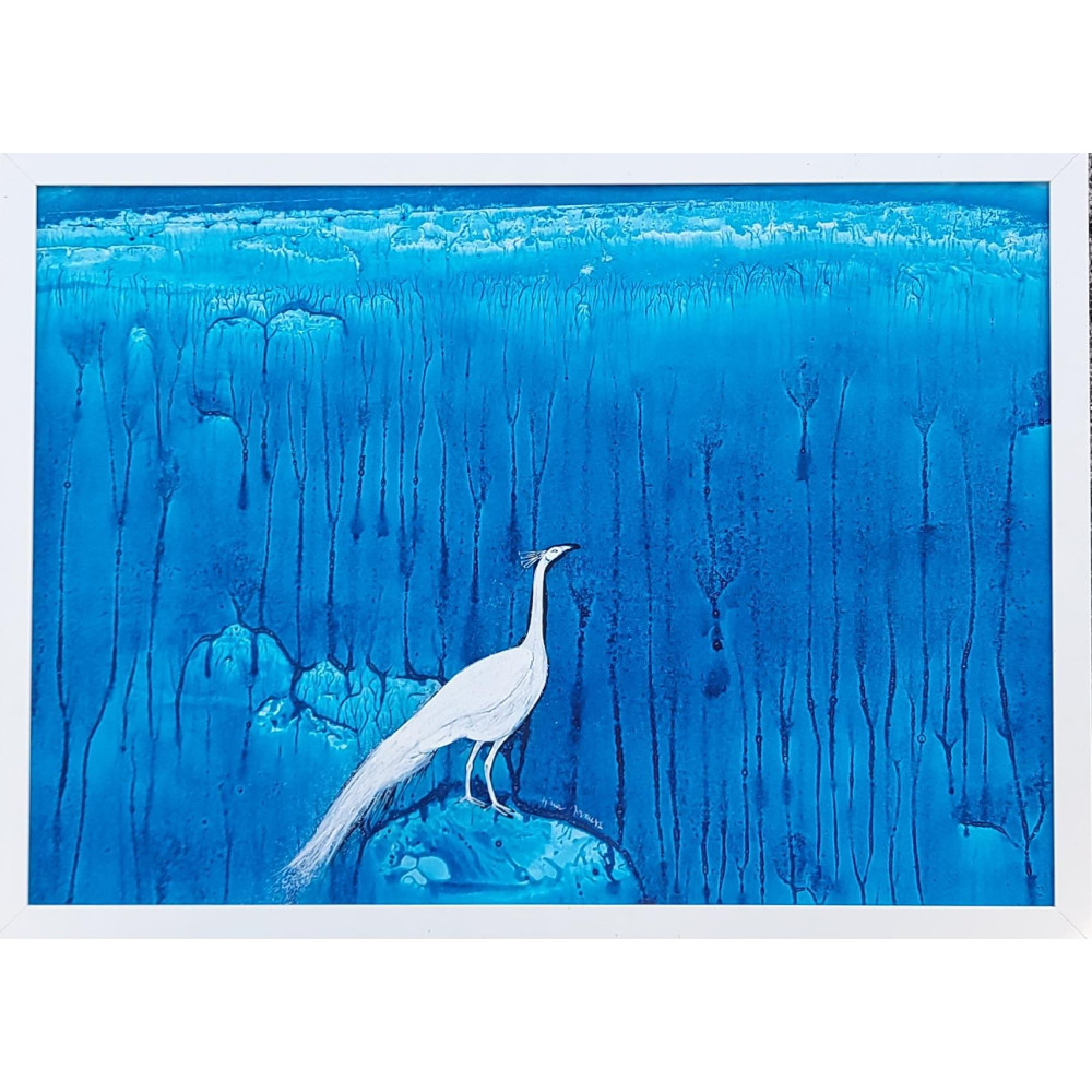 Technika wykonania: gwasz. Wymiary: 35x26 cm. Rama o szerokości 2,5 cm, w kolorze srebrnym.