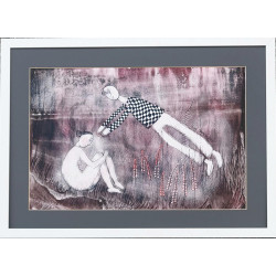 Technika wykonania: gwasz. Wymiary: 35x27 cm. Rama o szerokości 4 cm, w kolorze srebrnym.