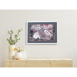 Praca oprawiona w prostą drewnianą ramę o szerokości 2.5cm