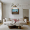 Obraz oprawiony w piękną brązową ramę o szerokości 8 cm.