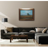 Obraz oprawiony jest w passe-partout o szerokości 11cm i ramę w kolorze oliwkowym o szerokości 4,5cm.