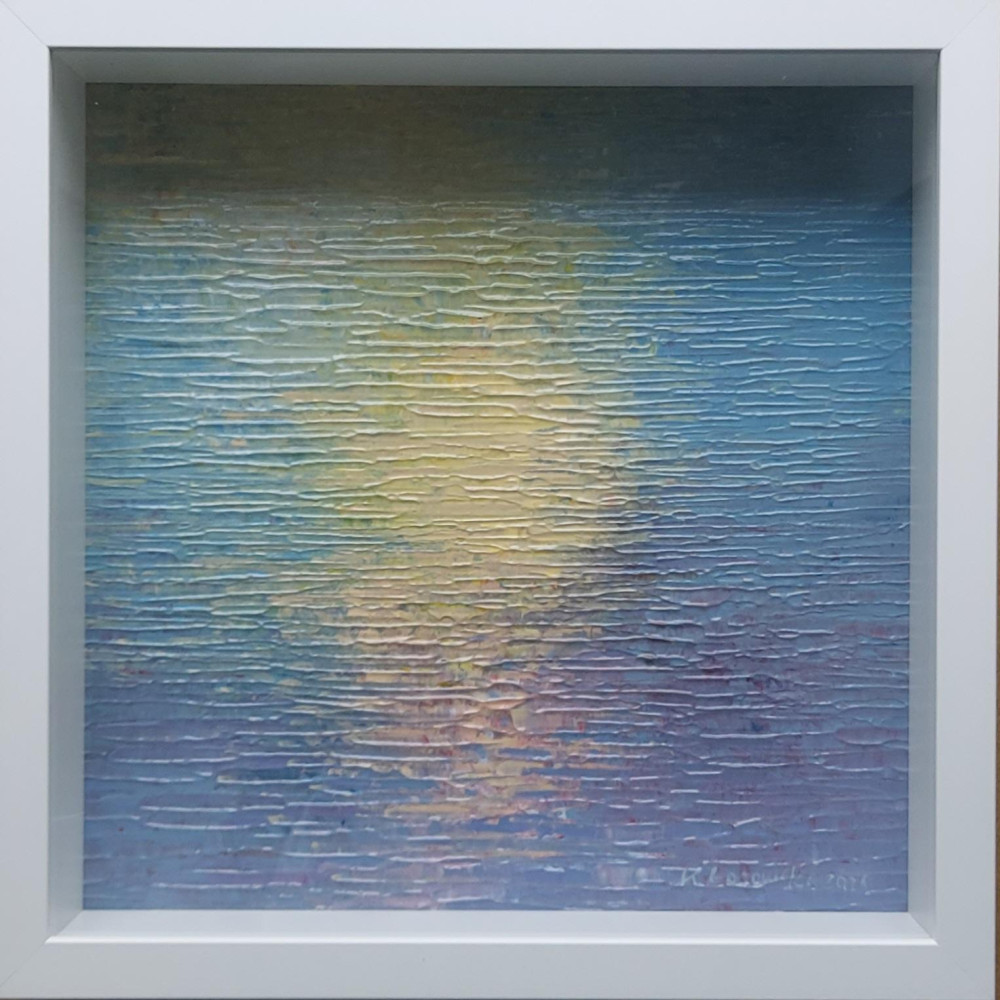 Praca autorstwa Krzysztofa Łozowskiego przedstawia subtelne zjawisko światła, odbić na wodzie. Dominują pastelowe odcienie fioletu, błękitu, żółci, które tworzą nastrojową, kojącą atmosferę. Wyjątkowa tekstura, uzyskana dzięki zastosowaniu trudnej techniki malowania szpachlą, nadaje obrazowi trójwymiarowości, imitując delikatne fale na powierzchni wody. Artysta, zainspirowany żywiołem wody, ukazuje jej nieprzewidywalność i piękno poprzez formę, światło i cieniowanie.