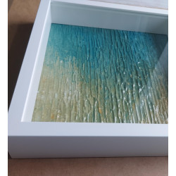 Akryl na tekturze oprawiony w nowoczesną głęboką ramę o szerokości 1,5cm oraz głębokości 6cm.Obraz zabezpiecza szybka z pleksi.