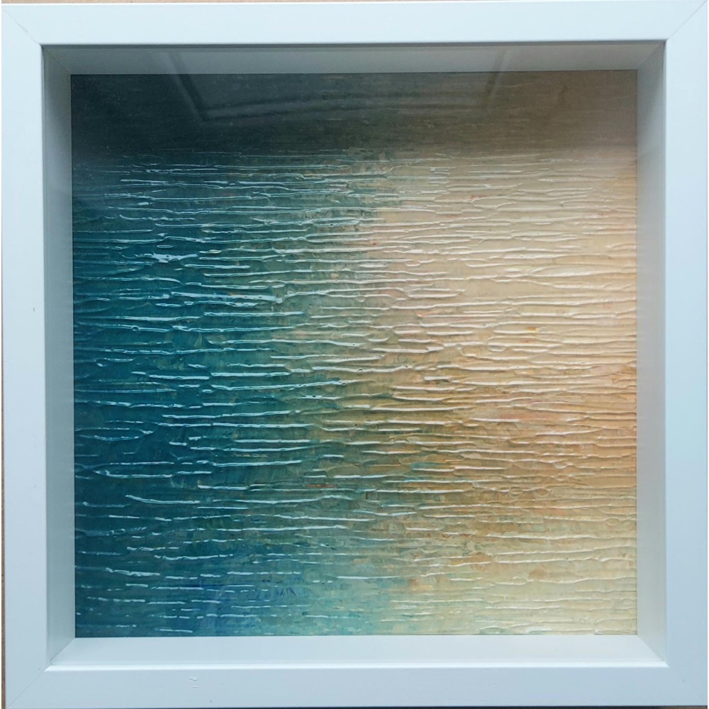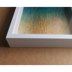 Akryl na tekturze oprawiony w nowoczesną głęboką ramę o szerokości 1,5cm oraz głębokości 6cm.Obraz zabezpiecza szybka z pleksi.