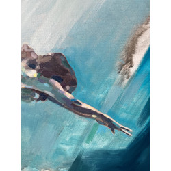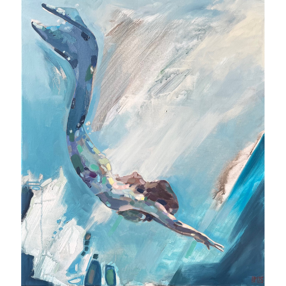 Zanurz się w magiczny świat sztuki z obrazem „Syrena” autorstwa Anny Michalik. Ten dynamiczny, pełen ekspresji olej na płótnie przedstawia mitologiczną istotę w hipnotyzującym, delikatnym ruchu. Bogata paleta barw oddają lekkość i tajemniczość syreny zanurzającej się w wodzie.