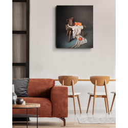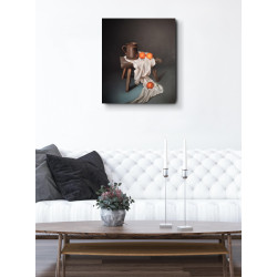 To wyrafinowana martwa natura, która łączy klasyczną elegancję z mistrzowskim operowaniem światłem i fakturą. Artysta, Paweł Orzechowski, stworzył tę wyjątkową kompozycję na najwyższej jakości lnianym płótnie od renomowanej firmy PPHU Rogal, co gwarantuje trwałość i doskonałą jakość dzieła.