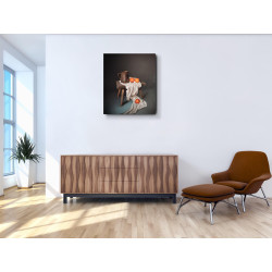 Obraz oprawiony jest w solidną drewniana ramę o szerokości 5 cm.