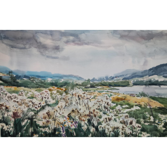 Akwarela na papierze o wymiarach 40x50 oprawiona w passe-partout.
