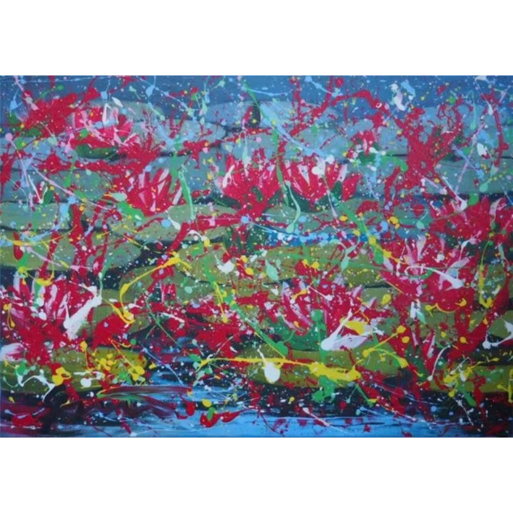 Akryl na tekturze oprawiony w nowoczesną głęboką ramę o szerokości 1,5cm oraz głębokości 6cm.Obraz zabezpiecza szybka z pleksi.