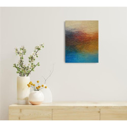 Akryl na tekturze oprawiony w nowoczesną głęboką ramę o szerokości 1,5cm oraz głębokości 6cm.Obraz zabezpiecza szybka z pleksi.
