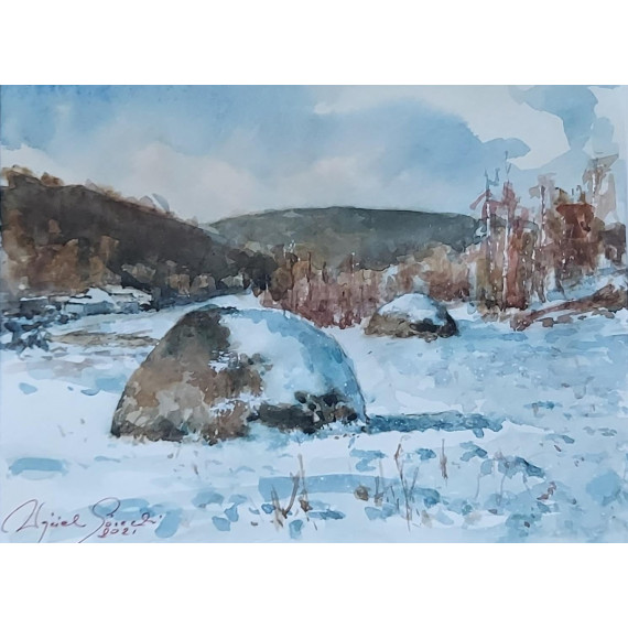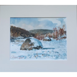 Akwarela oprawiona w Passe-partout o wymiarach całkowitych 40×50cm.
