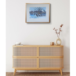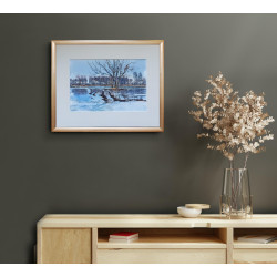 Praca oprawiona w prostą drewnianą ramę o szerokości 2.5cm
