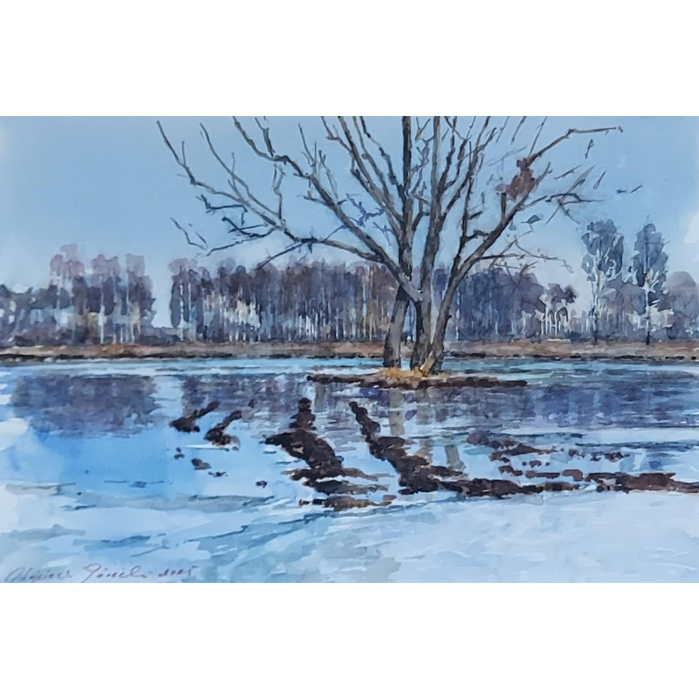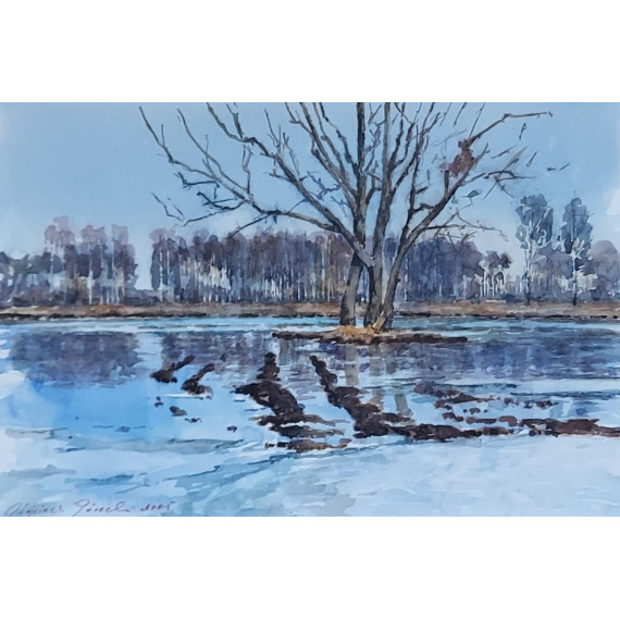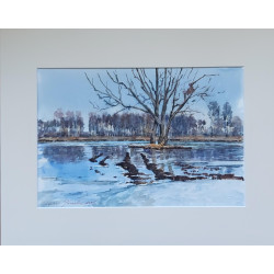 Akwarela oprawiona w Passe-partout o wymiarach całkowitych 40×50cm.