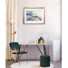 Technika Akwarela oprawiona w passe-partout oraz delikatną białą ramkę.