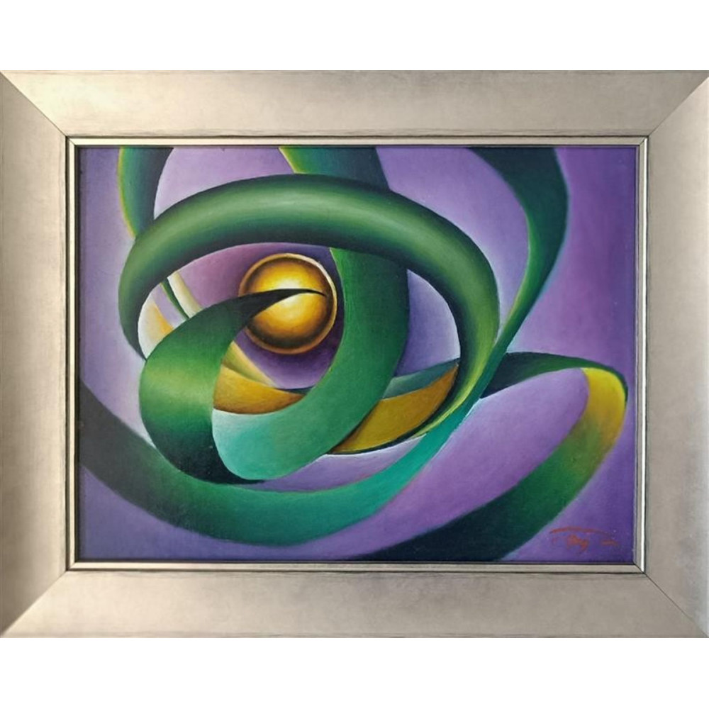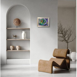 Akryl na płótnie oprawiony w nowoczesną ramę.
