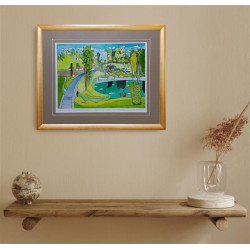 Akwarela oprawiona w Passe-partout o wymiarach całkowitych 50×40cm.