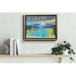 Praca jest oprawiona w ramę o kształcie półwałka w kolorze szampańskiego złota. Szerokość ramy 3cm,głębokość 4cm.
