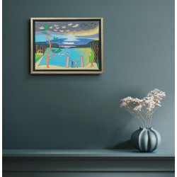 Praca oprawiona w prostą drewnianą ramę o szerokości 3cm.