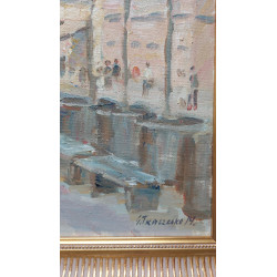 Akryl na płótnie o wyrazistej, grubej fakturze.