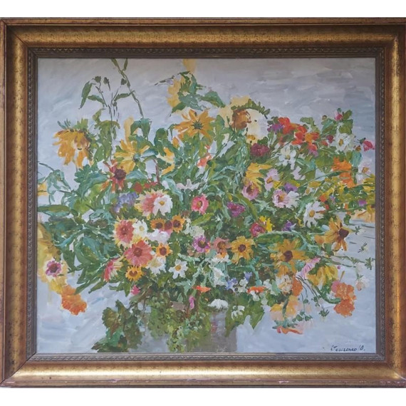 Bukiet . Technika wykonania: olej na płótnie o grubej strukturze. Wymiary: 60x80 cm.