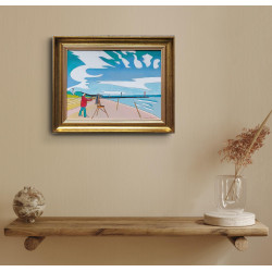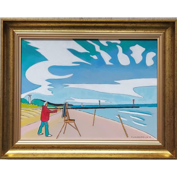 Akryl na płótnie oprawiony w nowoczesną ramę o szerokości 9 cm