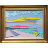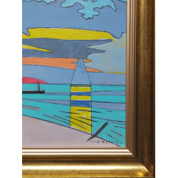 Olej na desce oprawiony w aksamitne passe partout 5cm oraz ramę 3,5cm.