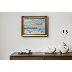 Akwarela oprawiona w Passe-partout o wymiarach całkowitych 40×50cm.