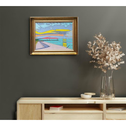 Praca oprawiona w głęboka, nowoczesną ramę,
