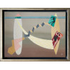Praca oprawiona w passe partout oraz prostą drewnianą ramę o szerokości 2cm.
