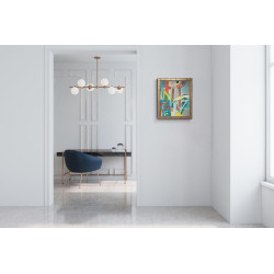 Akryl na płótnie oprawiony w nowoczesną, elegancką ramę o szerokości 7cm.w kolorze szampańskiego złota.